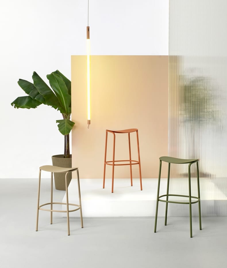 Take the new Blaine stool as an example: it is available in bar height at H750 and counter height at H650mm.