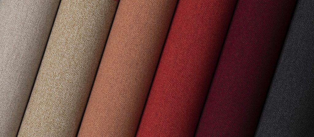 A subtle, textured fabric that is warm and soft to the touch. The Trevira element combines comfort and safety, it is the flame retardant brand. It has both more traditional muted tones and stronger more modern colour variants.